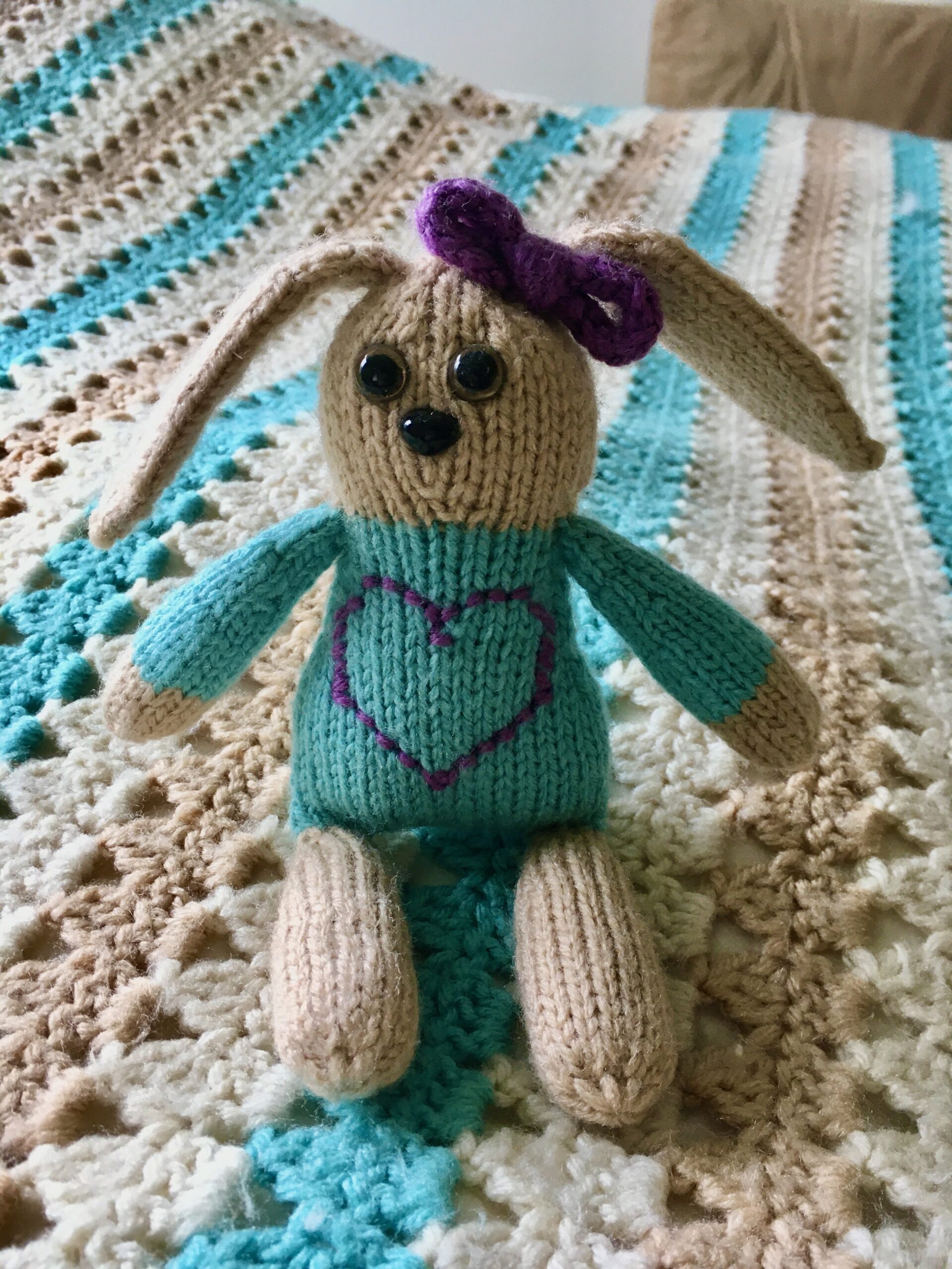 I spend a great deal of time with migraines doing things that occupy my hands while my brain checks out. Sometimes this includes adorable knit stuffed animals like this bunny. I’ve only made a handful of stuffed animals from the book of patterns I have, and I definitely plan to make as many more as I can.